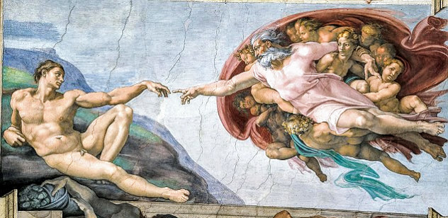 La mano di Dio che si protrae verso quella di Adamo è uno dei brani di pittura più celebri che esistano. Ho voluto raffigurare il momento esatto in cui Dio dona lo spirito e la vita all’uomo.