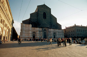 Questa è la Basilica di San Petronio, a Bologna. Sulla facciata sono ancora presenti i perni sui quali era fissata la base della fusione in bronzo.