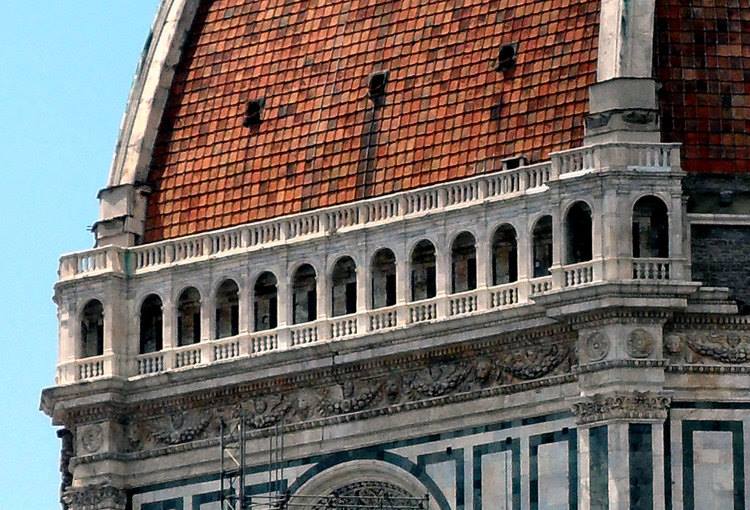 Fu affidata a lui quella commissione. Era il 1506e si mise in testa di fare un ballatoio con colonne in marmo bianco, che avrebbe adornato tutto il tamburo ottagonale. Ebbe fortuna Baccio d’Agnolo che il Brunelleschi era morto da parecchio: non credo avrebbe approvato il fatto che si modificasse la sua cupola in quel modo lì.