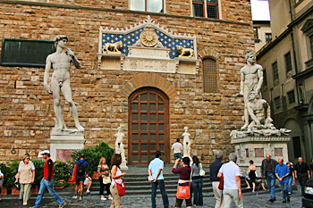 Vi do’ il buongiorno dalla mia Firenze che da meno di un’ora ha iniziato poco a poco a ridestarsi. Di turisti in giro ancora ce ne sono pochi ma prima delle nove invaderanno le strade alla ricerca delle opere più belle da vedere. Oh, ricordatevi che il David in Piazza della Signoria è una copia! A volte mi fermo davanti a Palazzo Vecchio e non son pochi quelli che a bocca aperta rimangono imbambolati davanti al fac-simile del mio David. Ma non lo vedete che non è il mio? Non vi sembra strano che ai suoi piedi non ci sia una moltitudine di persone?