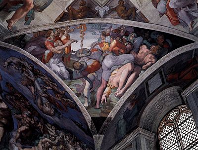 In the vault of the Sistine Chapel I wanted to depict numerous scenes and characters from Genesis. Among the various subjects that I decided at the time to paint, there is also The Serpent of Bronze or one of the stories of the salvation of Israel during which the Israelite people were protected by the Most High.