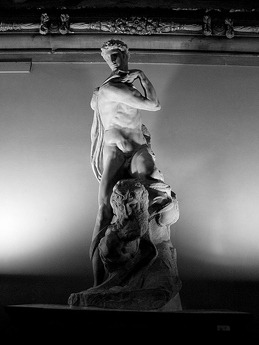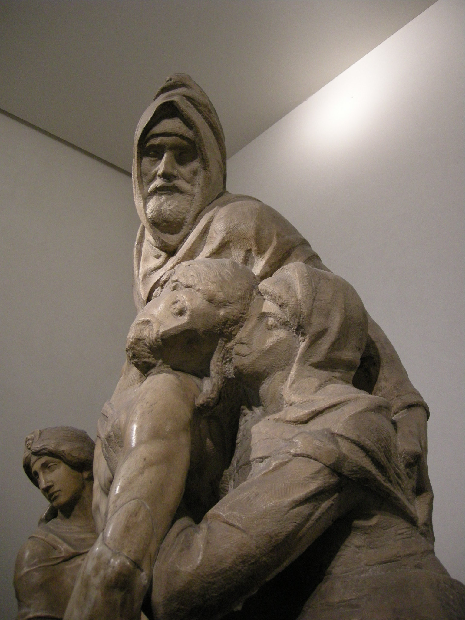 Fra le opere più conosciute che abitano in questo palazzone c’è sicuramente il mio Bacco. Lo scolpii per il cardinale Raffele Riario nel 1496, durante il mio primo momento romano. Ah, ricordatevi che la coppa che il Bacco sostiene non è originale. Quella già non c’era più nel momento in cui la scultura venne esposta nel giardino delle antichità del cardinale. Il Bargello conserva altre mie opere importanti come il Tondo Pitti, il David-Apollo, il busto del Bruto e da qualche anno anche il cosiddetto crocifisso Gallino che tanto ha fatto discutere i critici d’arte.