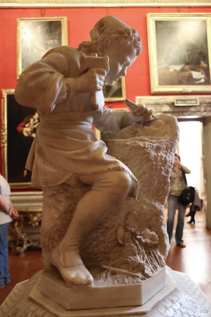 Lo scultore Cesare Zocchi, a fine Ottocento dedicò una delle sue opere a me. Ve la propongo, non è deliziosa? Ritrae me poco più che bambino alle prese con la testa del fauno nel giardino di San Marco. Se volete vedere quest’opera con i vostri occhi non dovete far altro che avventurarvi fra le meravigliose sale della Galleria Palatina presso Palazzo Pitti, Firenze.