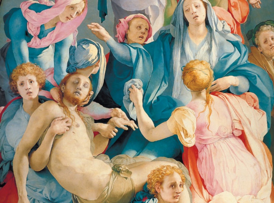 The Deposition I propose instead to follow is the one painted by Pontormo located in the Church of Santa Felicita in Florence. It was Ludovico Capponi in 1525 who commissioned Pontormo to decorate the newly purchased family chapel. The artist designed this altarpiece, very studied and observed in the centuries to come. The decoration of the entire Capponi chapel was protected with wooden panels until complete execution. When the works were completed in 1528, Florence was fascinated by Pontormo’s work.