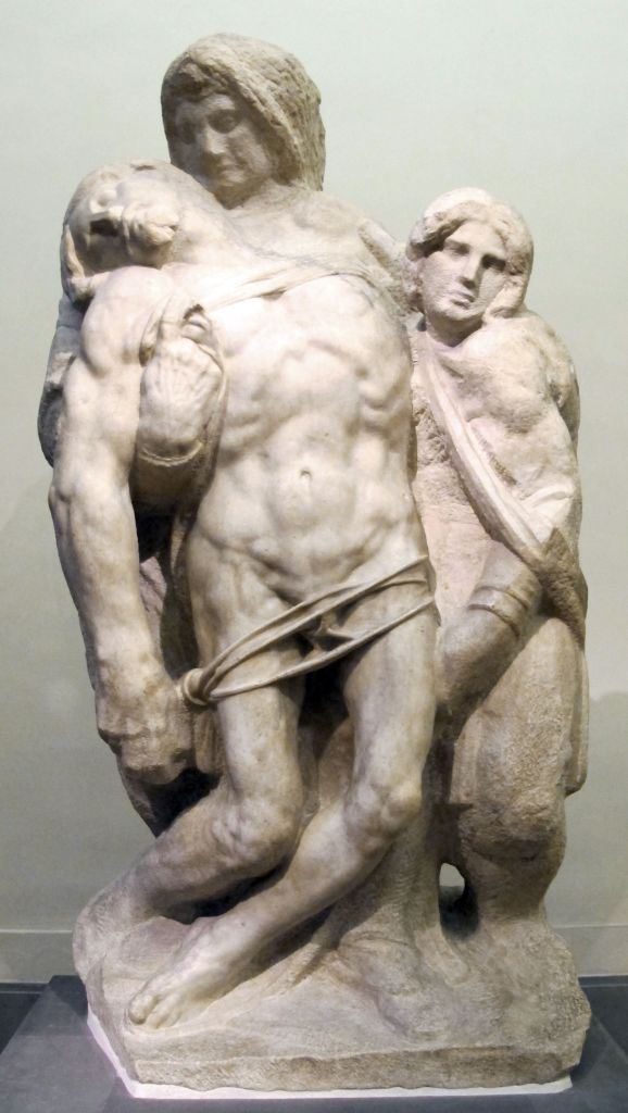 Di cosa sto parlando? Della Pietà Palestrina che da anni si trova all’interno della Galleria dell’Accademia, proprio nel lungo corridoio che porta direttamente alla Tribuna del David. Fu scolpita adoperando un blocco di marmo di recupero presumibilmente appartenente a una trabeazione e sul retro ancora sono visibile tracce di decorazioni precedenti.