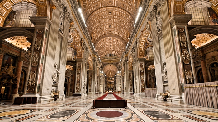 Little has been preserved of the old basilica of St. Peter which was built by the emperor Constantine. That grandiose structure had more than a thousand years of history behind it. Over time it had been enriched with precious coatings, paintings, frescoes, sculptures and precious metals that sparkled at the flickering of candles, making everything as brilliant as a well-cut diamond. But the weather had made it unstable and the load-bearing walls were dangerously inclining inward. For this reason, under the pontificate of Julius II, it was decided to build the new San Pietro, effectively demolishing the old Constantinian.
