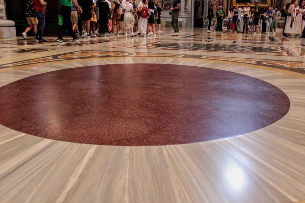 Today the Rota Porphiretica is constantly trampled by hundreds of visitors, often unaware of what they really have under their feet. It is one of the rare surviving pieces of the floor of the Constantinian basilica and has been positioned inside St. Peter’s, right in front of the main entrance.