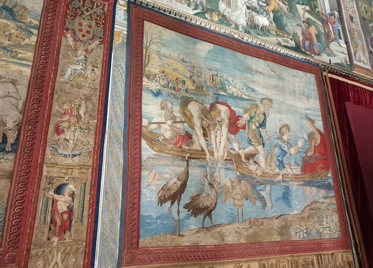 To take care of these masterpieces that have seen numerous and very skilled hands, it is the Laboratory of Areazzi and Fabrics of the Vatican Museums. It is made up of five lay restorers and three highly specialized nuns with infinite patience. In order to restore such a precious and so large tapestry years of meticulous daily work and an uncommon ability are needed.