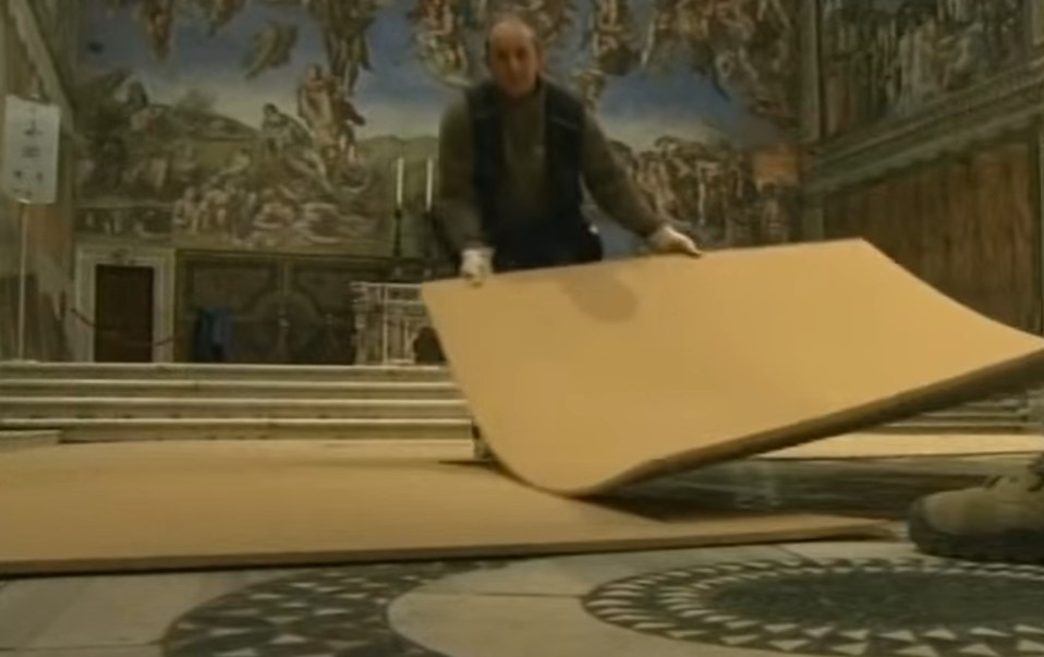In the video below you will see all the steps that lead to the complete setting up of the Sistine Chapel on the occasion of each conclave. For the moment your Michelangelo Buonarroti greets you
