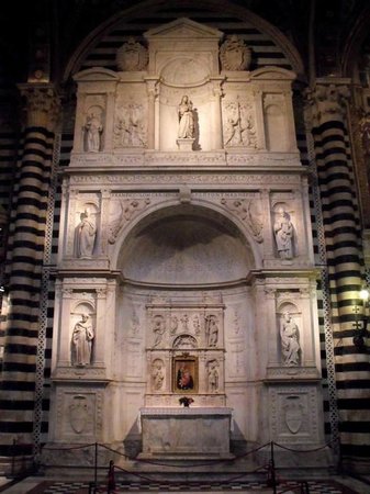 Il primo giorno di giugno del 1501, il cardinale Francesco Todeschini Piccolomini m’affidò la realizzazione di quindici sculture di modeste dimensioni da mettere nell’altare scolpito da Andrea Bregno.