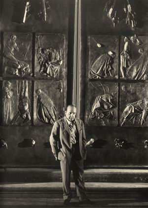The Gate located on the far left. Pope Pius XII, in 1947, announced a competition announcement to realize it and among all it was Giacomo Manzù who won it