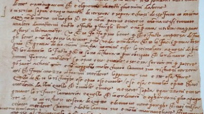 Per la vostra veggio l’amor che mi portate; e sappiate per cosa certa che io arei caro di riporre queste mia debile ossa a canto a quelle di mio padre, come mi pregate. Ma partend’ora di qua sarei causa d’una gran ruina della fabrica di Santo Pietro, d’una gran vergognia e d’un grandissimo pechato. Ma come fie stabilita tucta la compositione, che non possa esser mutata, spero far quanto mi scrivete, se già non è pechato a tenere a disagio parechi g[h]iocti c[h]’aspecton ch’io mi parta presto.