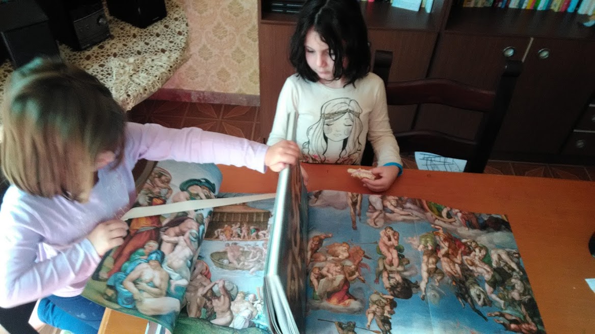 Lasciate sul tavolo di cucina libri pieni di belle foto che mostrino il mio Giudizio Universale, le Stanze di Raffaello, l’ultima cena di Leonardo ma anche con foto di sculture del Bernini, Canova, Finelli… vi sorprenderà vedere i vostri figli quanto siano interessati a guardare con attenzione quelle opere. La bellezza dell’arte non è mai fine a se stessa: apre gli occhi, il cuore e la mente.