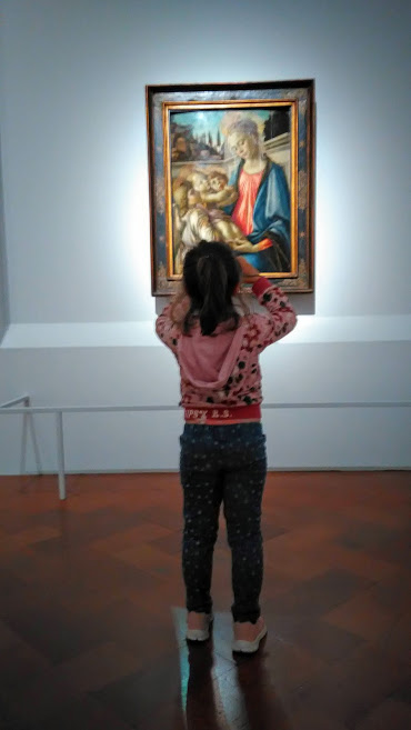 At Palazzo Strozzi, as you may have noticed in the photos, I did not go alone but accompanied by a cheerful five-year-old. Not only did he greatly appreciate the installation with the colorful hammocks in the courtyard but he accompanied me in all the rooms of the exhibition dedicated to Verrocchio doing a punctual and precise photographic reportage. I counted them: he took 213 photos of the works present and some of them on the floor. At the exit he said “Oh, I like this Verrocchio and then I also like big tablets”. Here, according to him, the big tablets are the interactive screens at the end of the path to which he has dedicated some of his attention.
