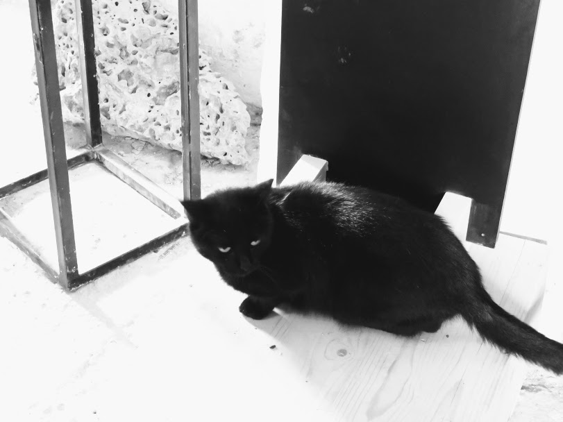 Mi guardo attorno per scoprire che qui i materiali adoperati sono davvero tanti. Non solo marmo ma anche cartone, gesso, ferro e tanto altro. Mentre le due artiste conversano e spiegano ciò che fanno in questo laboratorio sui generis, un bel gattone s’aggira fra i vari lavori con le meravigliose movenze tipiche dei felini.
