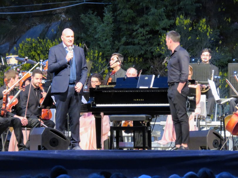 Cala la sera e arriva un ventarello leggero ma ghiacciato. Ecco, suonare soprattutto i fiati con questo freddo qui e in maniche di camicia non è il massimo ma invece l’Ensamble Symphony Orchestra regala il meglio di sé, sotto la direzione di Giacomo Loprieno.