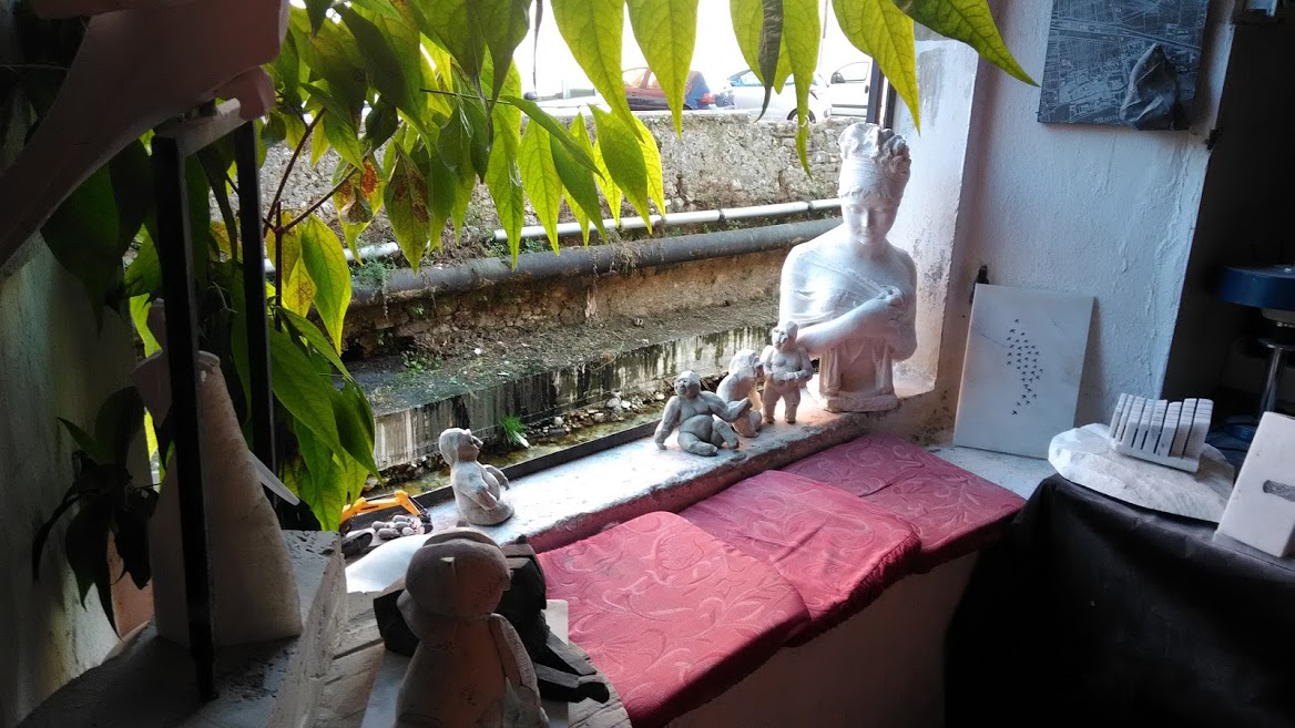 Lo spazio vuoto non esiste, o meglio, viene subito riempito con gessi, marmi, attrezzi vari e pezzi di scarto che alla fine magari vengono riadoperati chissà come e chissà quando. Ogni laboratorio ha la sua storia da raccontare e spesso il mestiere passa dal padre al figlio, proprio come in questo caso.