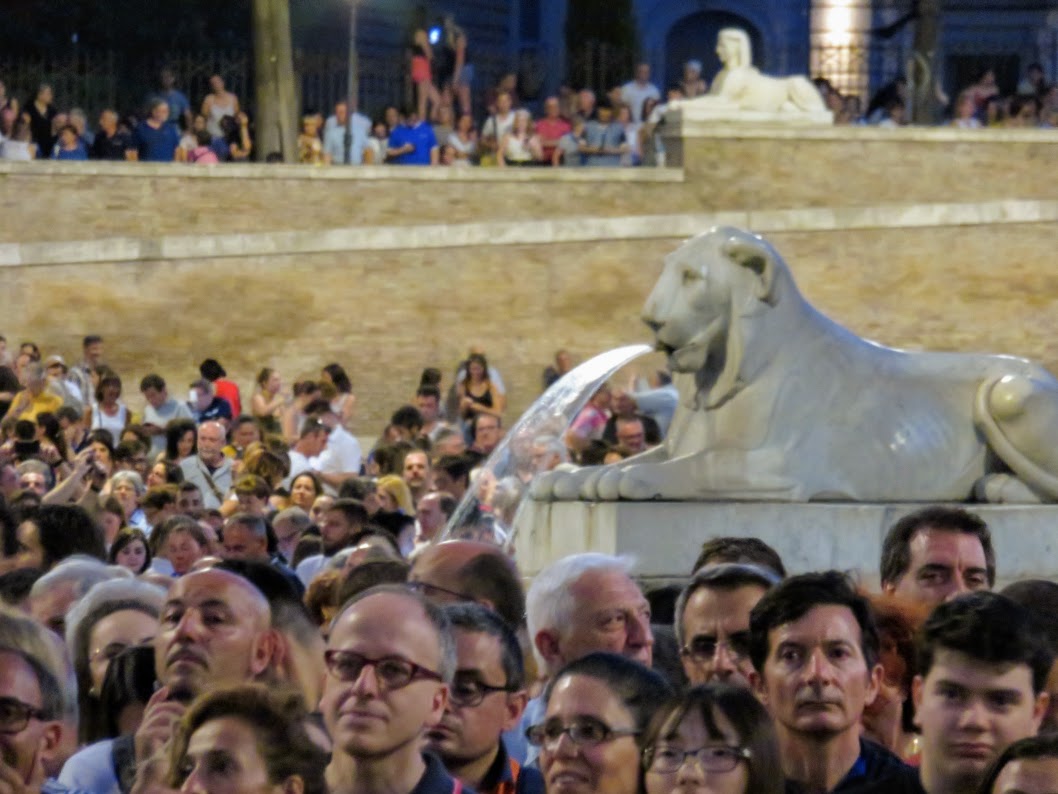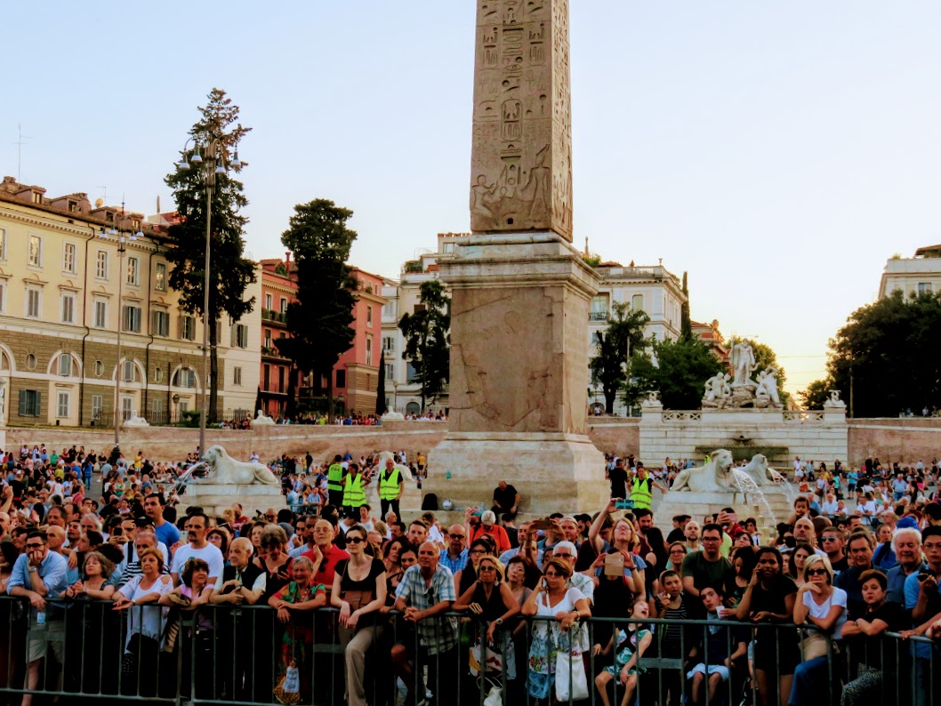 When the first fires begin to start from the terraces of the Pincio, Piazza del Popolo explodes with wonder.