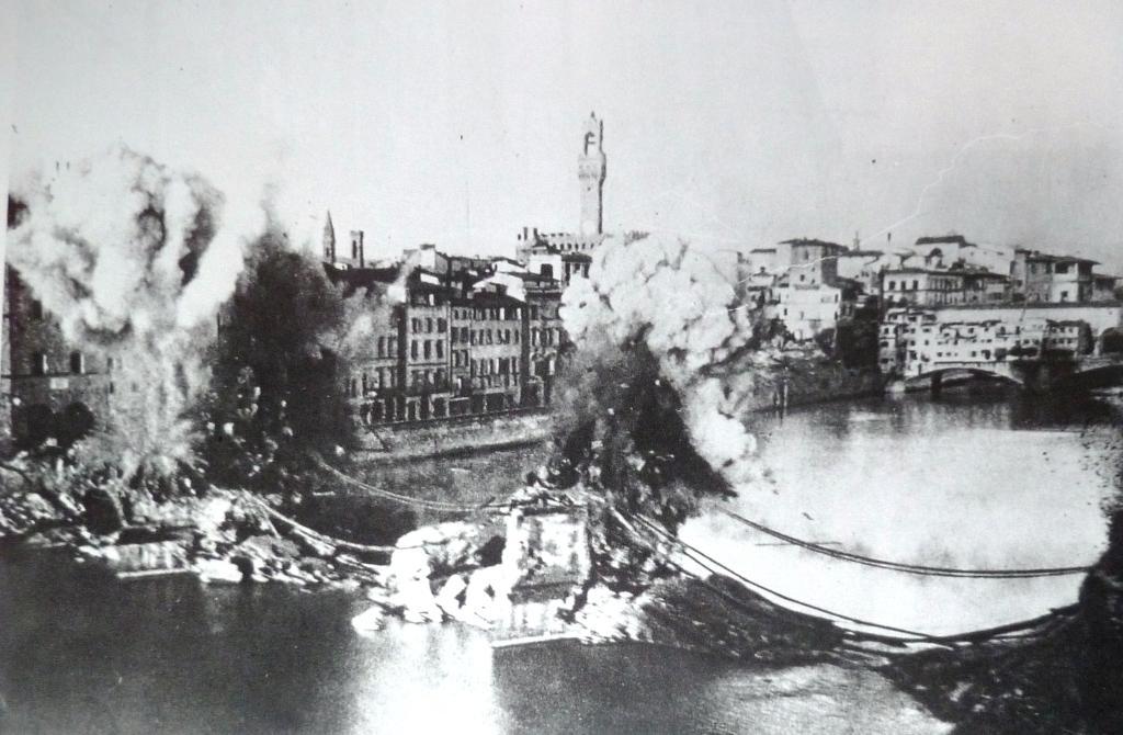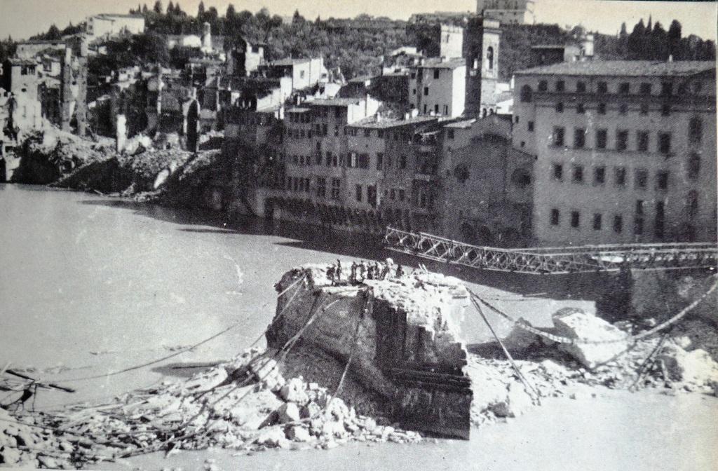 Le forze tedesche, nel tentativo di rallentare l’avanzata anglo-americana, non esitarono a minare tutti i ponti sull’Arno di Firenze, compresi Ponte Vecchio e Ponte Santa Trinita.