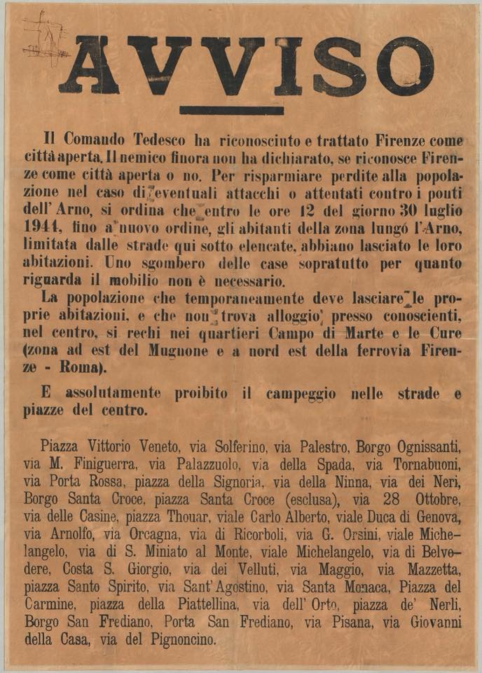 Il 29 luglio del 1944, sui muri della città venne affissa l’ordinanza di far sgombrare i Lungarni.