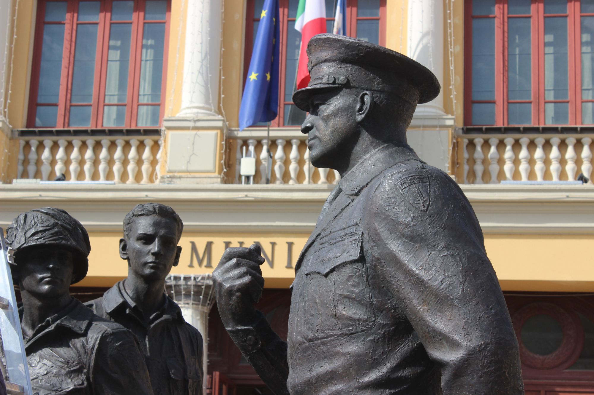 Fra le opere posizionate davanti al municipio di Pietrasanta visibili da oggi, ci sarà anche quella che rappresenta il Eisenhower durante l’incontro con i paracadutisti prima del lancio notturno dello sbarco alleato in Normandia.