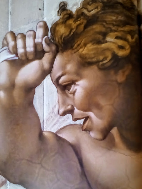 Nella volta della Cappella Sistina affrescai venti ignudi attorno ai riquadri centrali più piccoli. Ciascuno di questi riquadri è contornato da quattro giovani atletici, divisi a coppie.