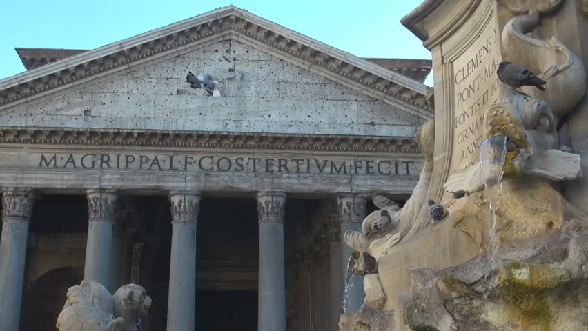 Agrippa probabilmente lo volle dedicare al culto degli dei che proteggevano la famiglia Giulia ovvero Marte e Venere. Sulla facciata campeggia la grande scritta in bronzo M.Agrippa L.F.Cos. Tertium.Fecit ovvero Marco Agrippa , figlio di Lucio, console per la terza volta, edificò. Era il 27 avanti Cristo.