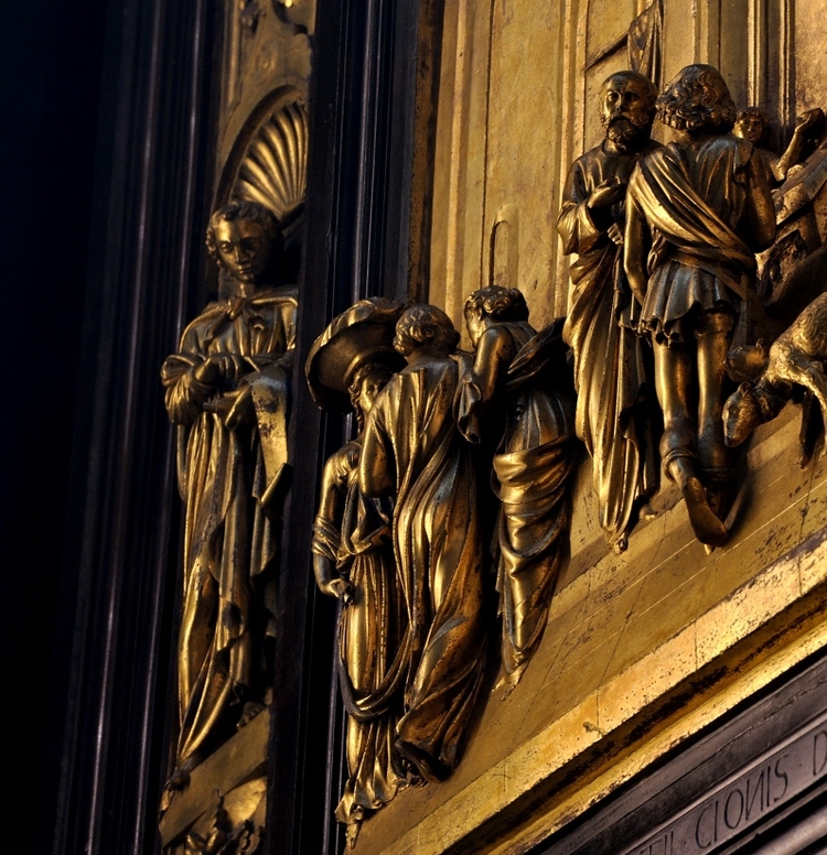 La Porta del Paradiso è quella sicuramente più celebre. E’ ripartita in 10 riquadri grandi rettangolari sistemati su cinque file, ciascuno decorato da tondi con le teste dei profeti. Tutti i riquadri raccontano scene prese dall’Antico Testamento.