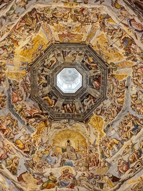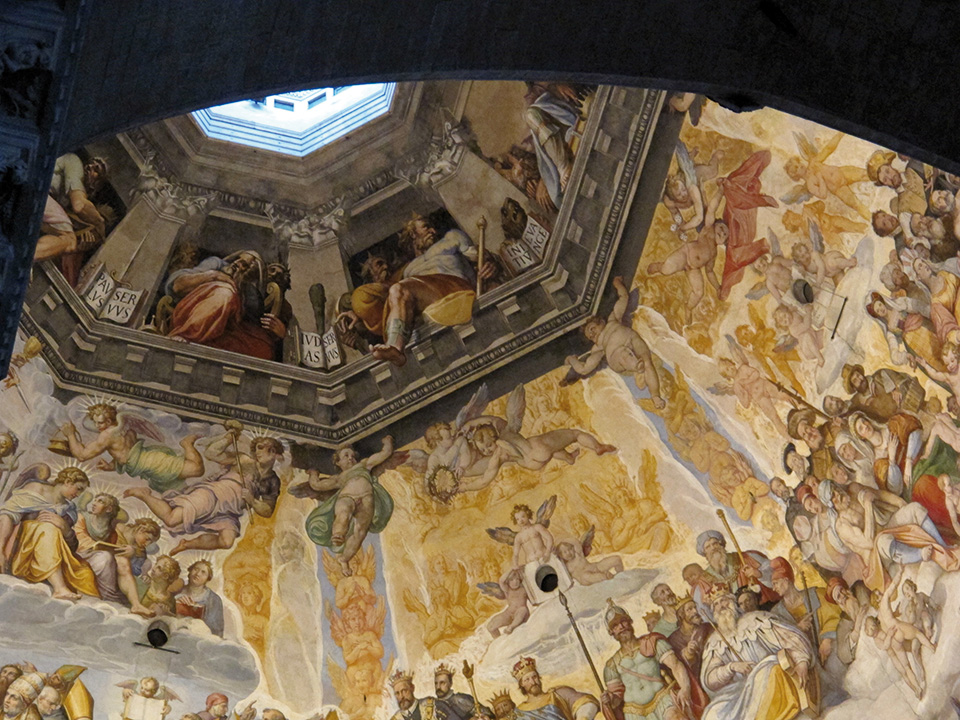 Do you know who decorated the inside of the dome? Probably yes. Between 1572 and 1579 my dear friend Giorgio Vasari and Federico Zuccari climbed up there on the scaffolding to create a grandiose Last Judgment, the same iconographic theme of the nearby Baptistery of San Giovanni.