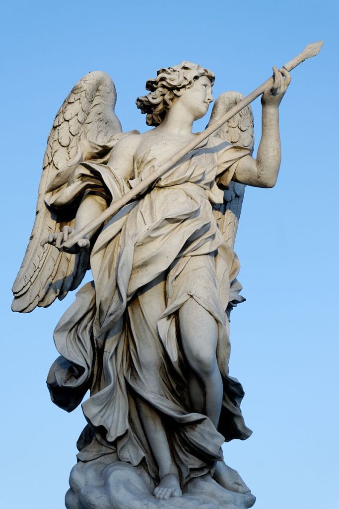 Procedendo il cammino sul ponte si trova la prima coppia di angeli: quello scolpito da Morelli mostra i flagelli con cui fu frustato Gesù mentre l’angelo scolpito da Antonio Raggi presenta la colonna, secondo quanto narrato nel Vangelo di Matteo. Come vedete niente è casuale.