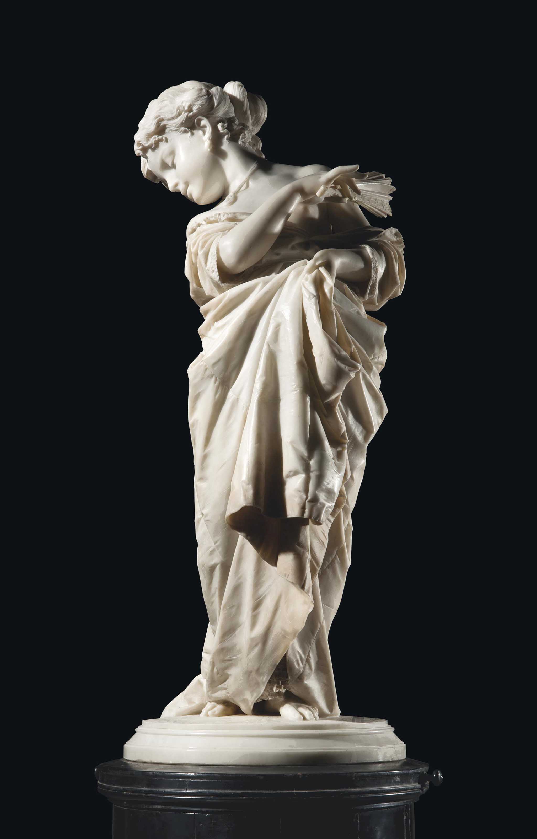 Partecipò all’Esposizione di Brera del 1863 proponendo la sua Frine spogliata al cospetto dei giudici. Si narra che Frine fosse la più bella dell’Antica Grecia e fu la ricchissima amante di Prassitele.