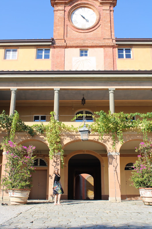 Al termine di un lungo viale alberato m’è comparsa davanti la Palazzina dell’Orologio, fatta costruire dagli Orsetti a cavallo fra il Seicento e il Settecento. Sulla facciata campeggia la meridiana e immediatamente sopra si vede l’orologio a sei ore.