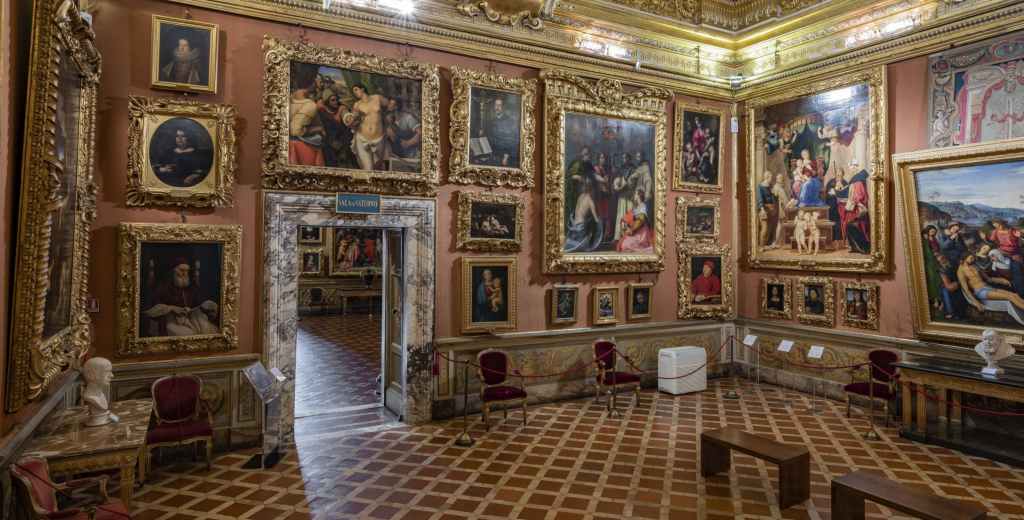 Proprio in questo luogo si trova in nucleo delle opere di Raffaello più consistente con la Madonna del Granduca, la Madonna del Baldacchino, il Ritratto di Tommaso Inghirami, la Visione di Ezechiele e la sublime Madonna della Seggiola.