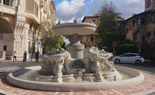 Fu progettata dall’architetto Gino Coppedé nel 1915 e poi realizzata fra il 1921 e il 1927. Ha uno stile liberty eclettico proprio come gli edifici che la circondano, costruiti fra il 1815 e il 1926. I lavori per la fontana procedettero un po’ a rilento a causa dello scoppio della Prima Guerra Mondiale.