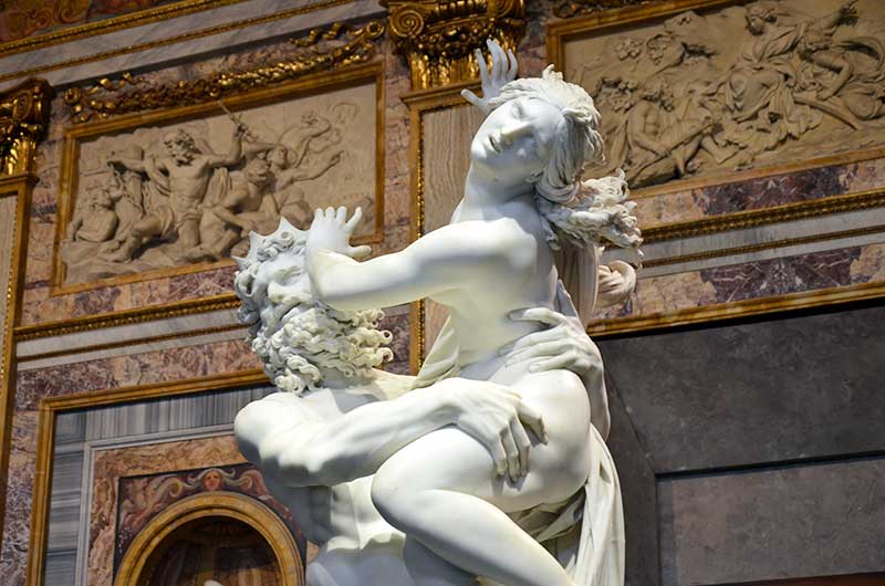 Shortly after, Cardinal Scipione Borghese noticed the skill of that young man and wanted to commission works from him that would later make Bernini’s fortune. Even today Galleria Borghese is the museum with the most works by Bernini in the world such as David, the Rape of Proserpina, Anchise and Ascanio and Apollo and Daphne.
