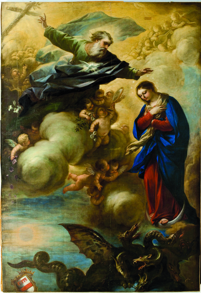 However, there are many other artists who wanted to dedicate wonderful paintings to the theme, such as Luca Giordano for example. He was 31 years old when the Capuchins of Cosenza commissioned him a painting with the Immaculate Conception by giving him an advance of 50 ducats.