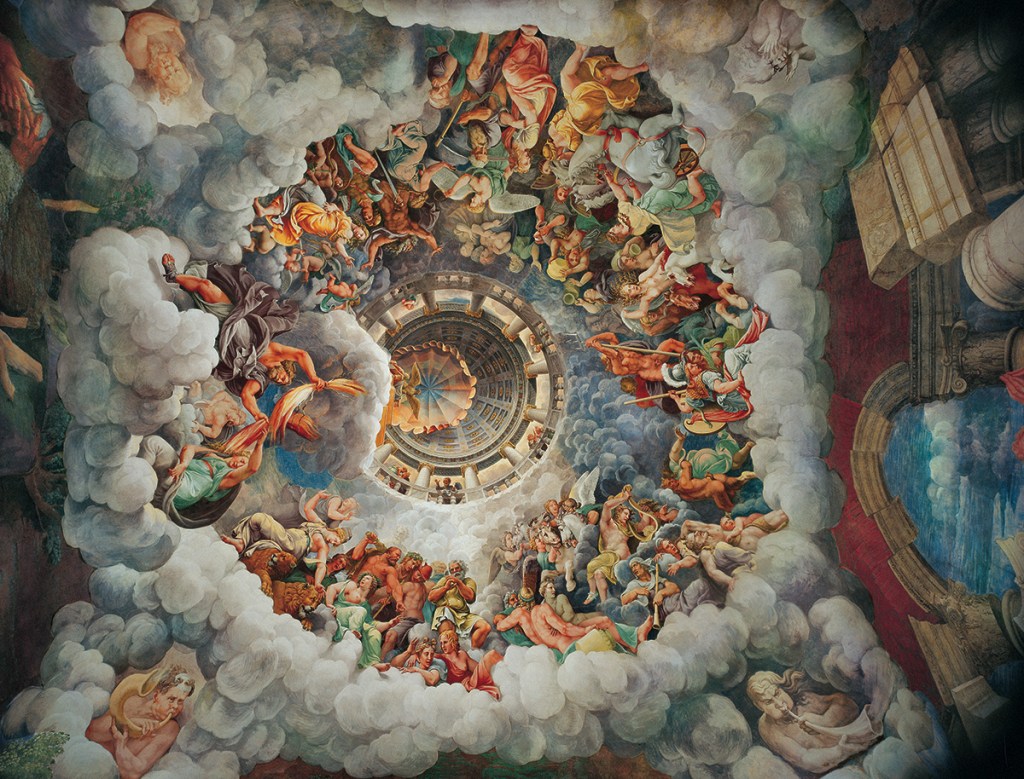 As Vasari wrote, “Let no one think that he will ever see a more horrible and frightening work of brush, nor more natural than this one. And whoever enters that room, cannot help but fear that everything will not fall on him … they were the large giants, who fell to the ground by lightning and lightning struck … “.