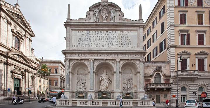 Papa Sisto V voleva fornire di acqua corrente i rioni che stavano nascendo sul Quirinale e sul colle del Viminale. Il suo non fu tanto un gesto di generosità: proprio lì infatti sorgeva la sua lussuosa Villa di Montalto e una costruzione del genere mica poteva essere priva d’acqua.