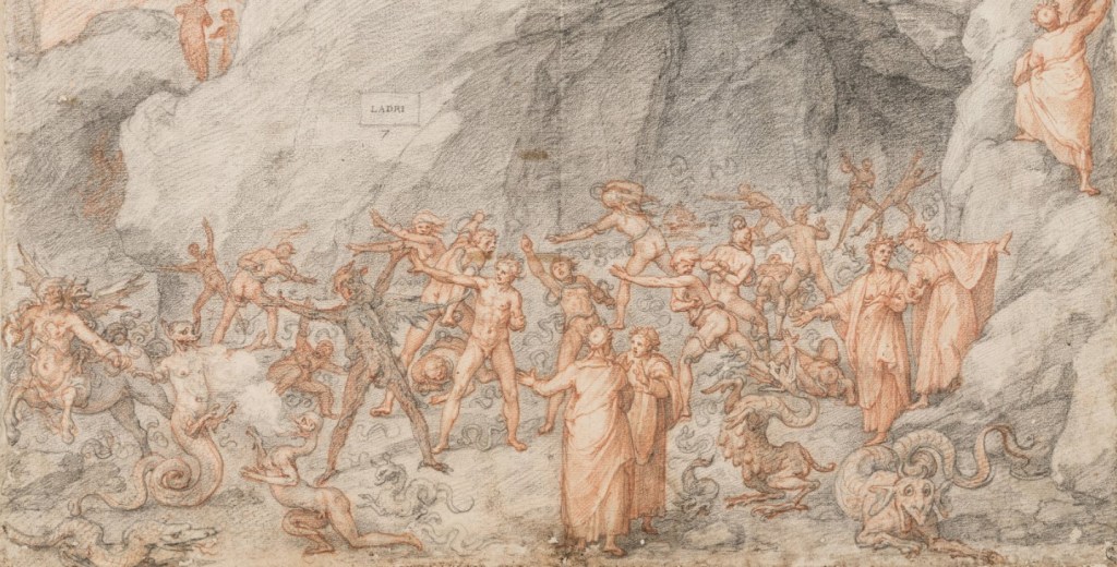 Sulla pagina web delle mostre online degli Uffizi è possibile vedere tutti i disegni realizzati alla fine del Cinquecento che illustrano la Divina Commedia, realizzati da Federico Zuccari. Le illustrazioni vengono accompagnati dagli approfondimenti scritti da Donatella Fratini, l’attuale curatrice dei disegni che vanno dal Cinquecento al Settecento appartenenti alla Galleria.