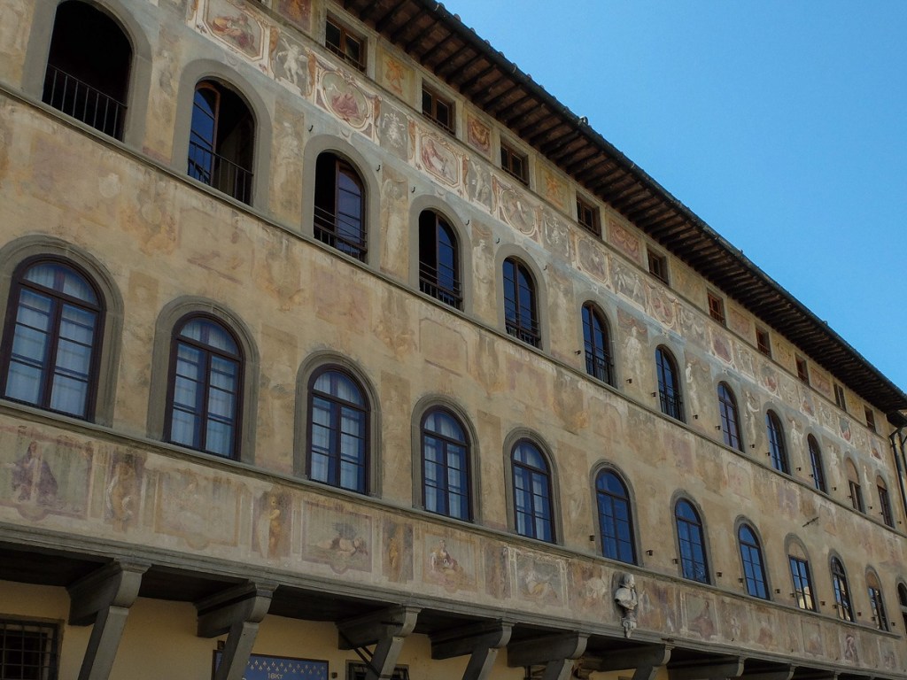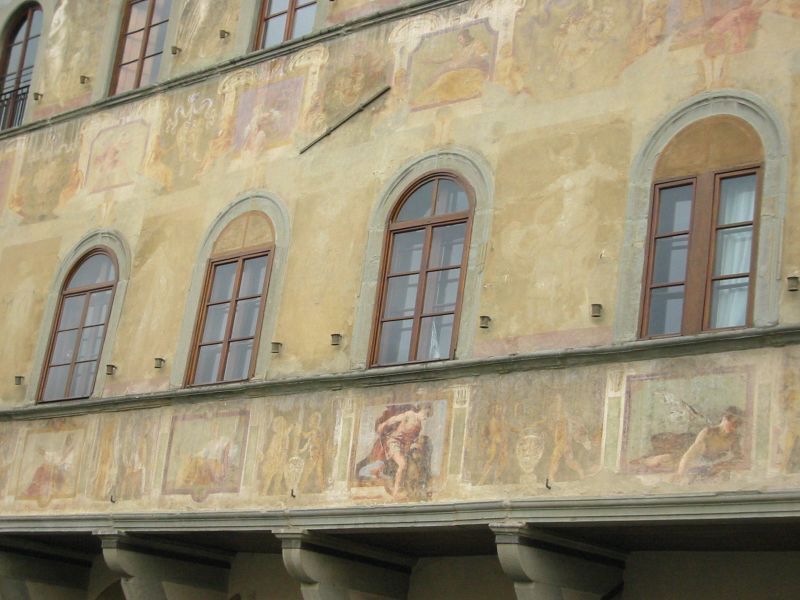 Entrando in Piazza Santa Croce non si può fare a meno di notare sul lato destro il grande Palazzo degli Antellesi con la sua facciata suddivisa in riquadri all’interno dei quali sono stati dipinti putti, allegorie, fiori ma anche elementi vegetali.