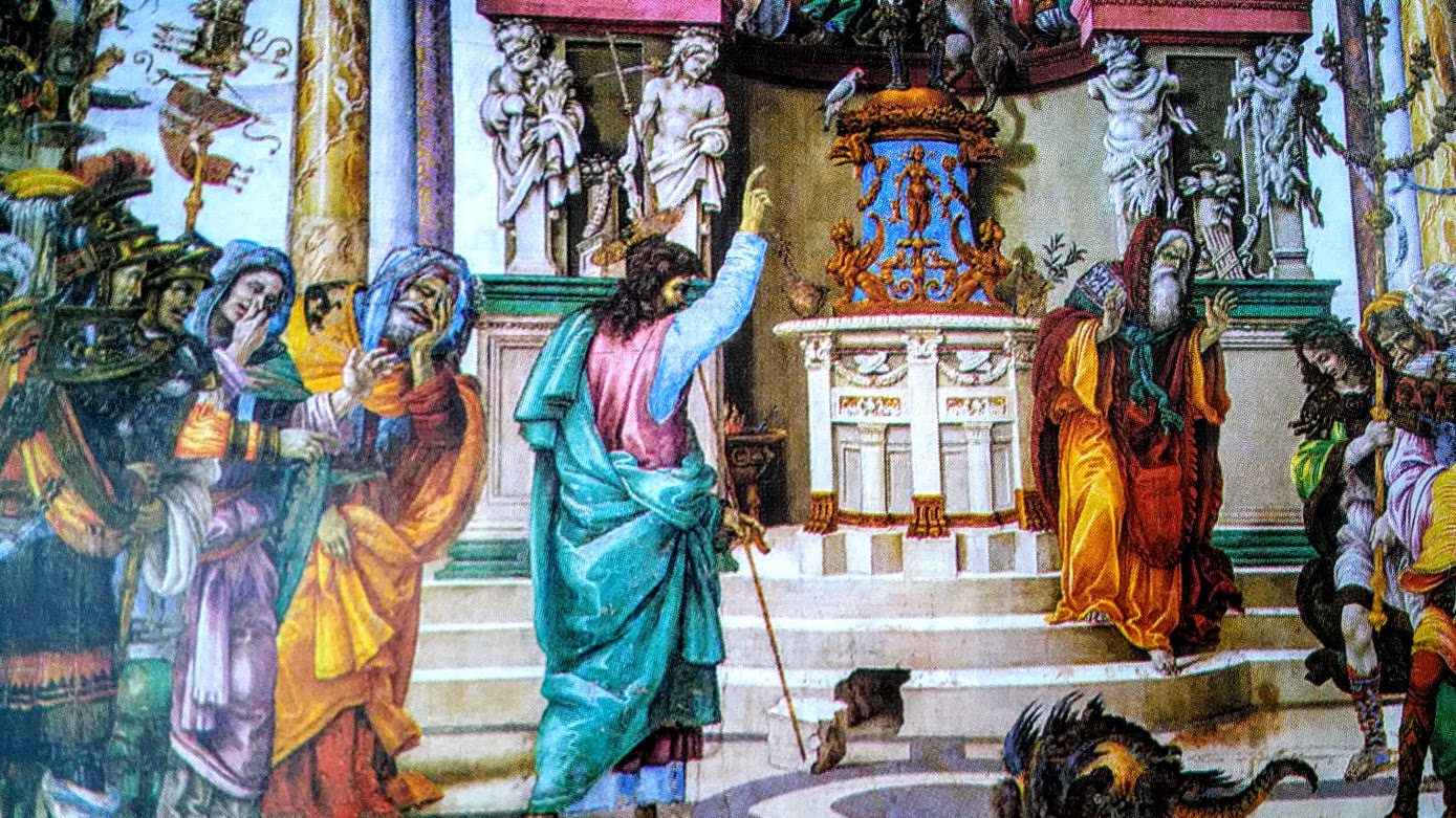 Tutta la scena che si svolge sotto i nostro occhi della cacciata del dragone dal tempio simboleggia di fatto lo scontro fra due culture: quella cristiana e quella pagana.