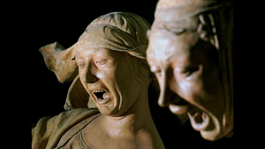 Par di sentire le loro strida, vederle barcollare, piombare sul rigido cadavere. Così scrisse il Venturi delle donne del Compianto nel Grande Atlante del Rinascimento