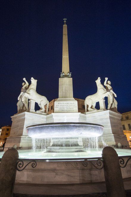 Papa Pio VI Braschi volle cambiare ancora una volta l’assetto del complesso dei Dioscuri e della fontana. Nel 1786 fece innalzare un obelisco in granito fra Castore e Polluce, proveniente dal Mausoleo di Augusto in Campo Marzio.