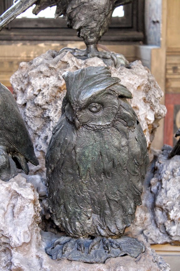 The birds were perched among the rocks, above the life-size animals, sculpted in 1555 by Fancelli.