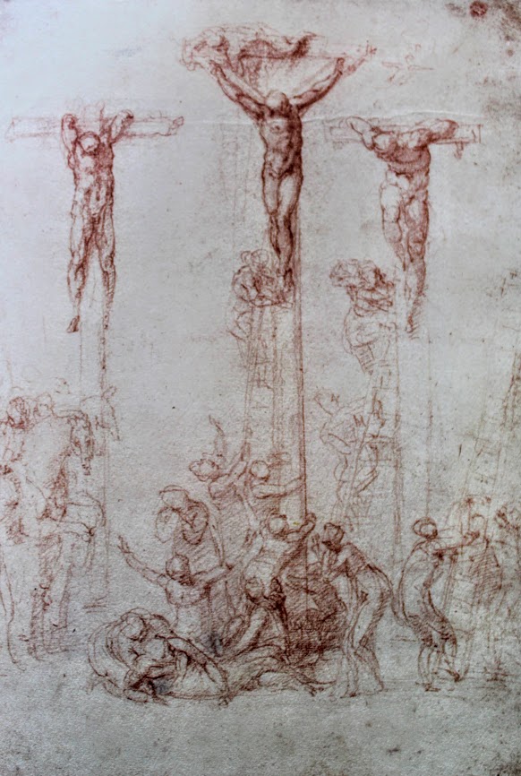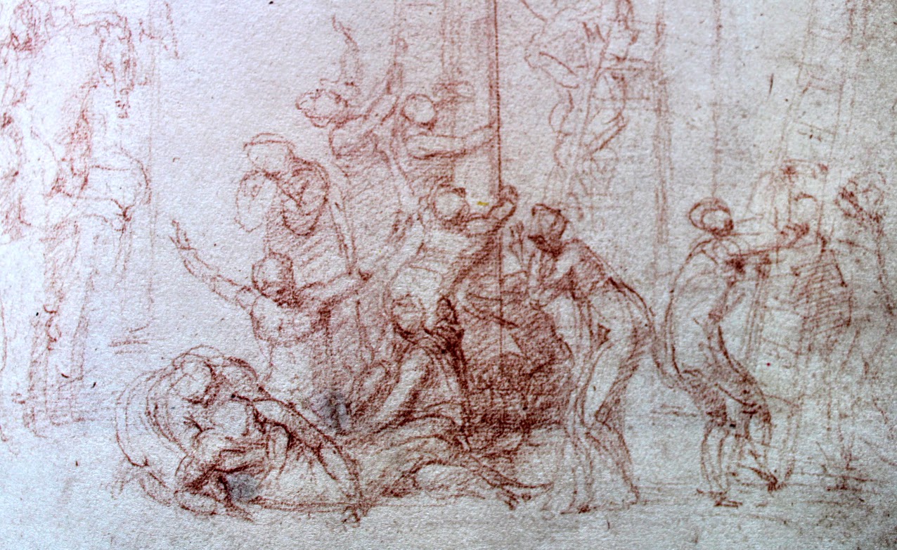 Il foglio è ben conservato e oggi appartiene alle collezioni del British Museum. Posi particolare attenzione nel disegnare il corpo di Cristo e quello dei due ladroni.