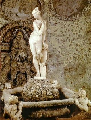 n un secondo momento fu posizionata al di sopra della conca la Venere che esce dal bagno, scolpita del Giambologna. Mentre la bella Venere si copre il seno con un braccio, i satiri la osservano mirando verso di lei i getti d’acqua.