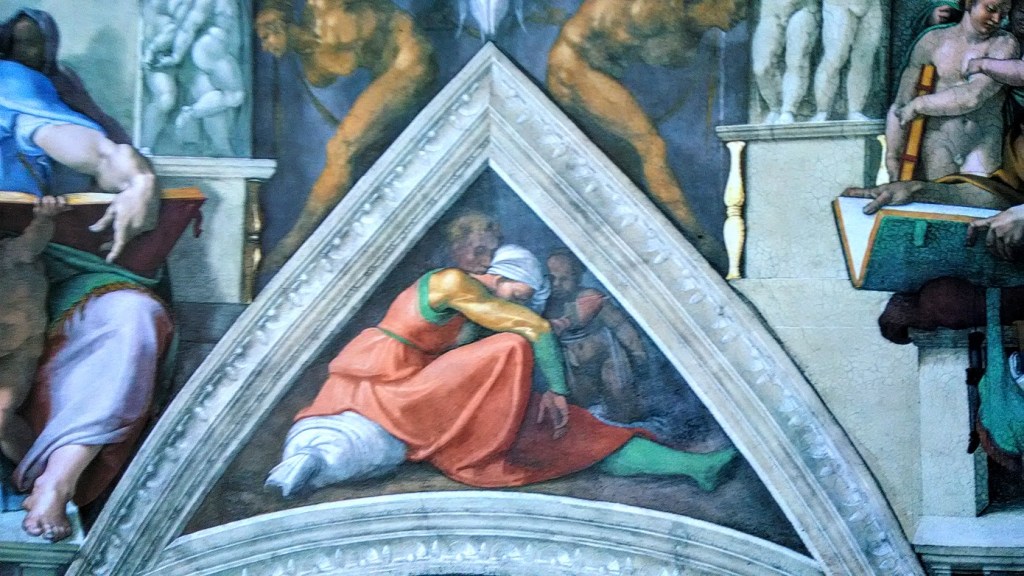 Fra il profeta Daniele e la sibilla Cumana, proprio sopra la lunetta con Asa, Iosaphat e Ioram, affrescai una donna seduta, con la gamba sinistra piegata e la destra allungata.