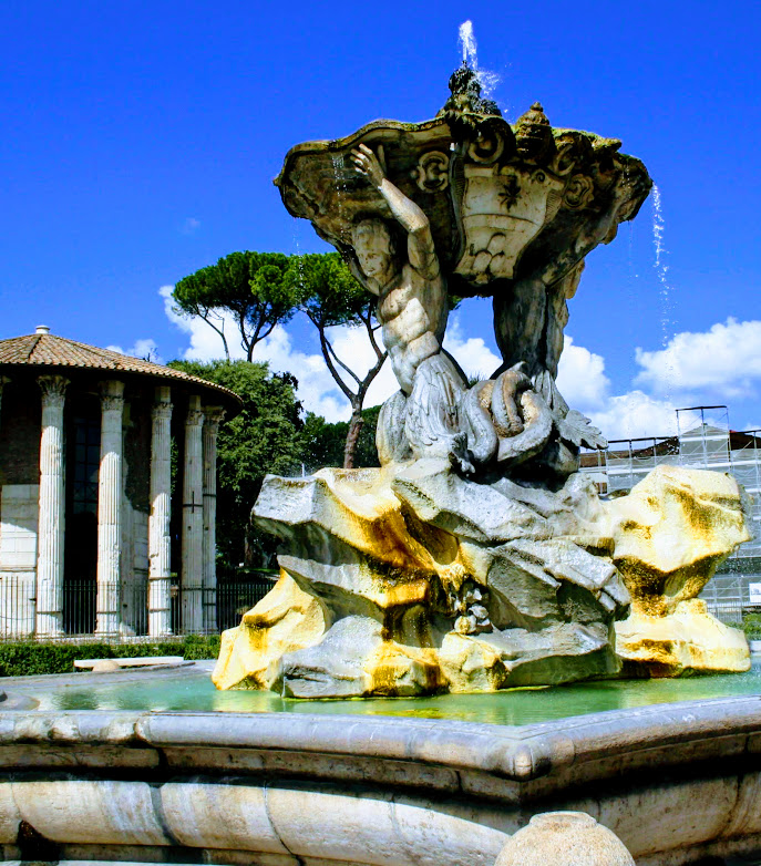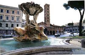 La Fontana dei Tritoni si trova nel cuore della Piazza della Bocca della Verità, proprio davanti alla basilica di Santa Maria in Cosmedin.