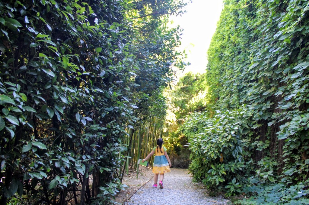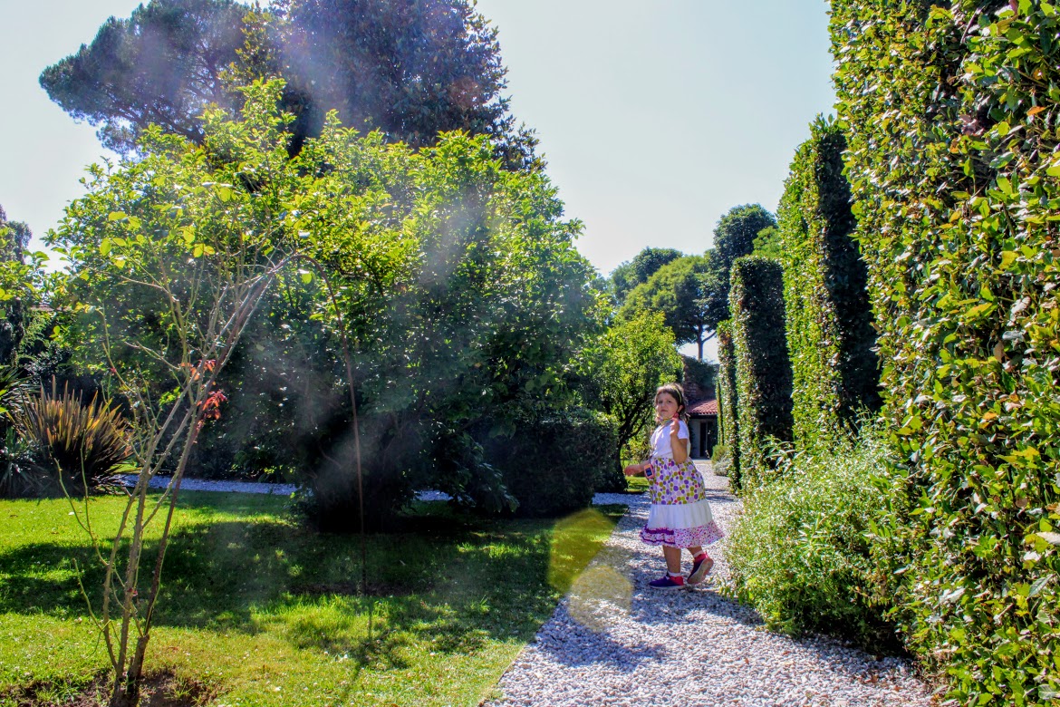 The external path is made more lively by the color of the hydrangeas in bloom, by the scent of citrus fruits and by the two historic thickets of bamboo canes.