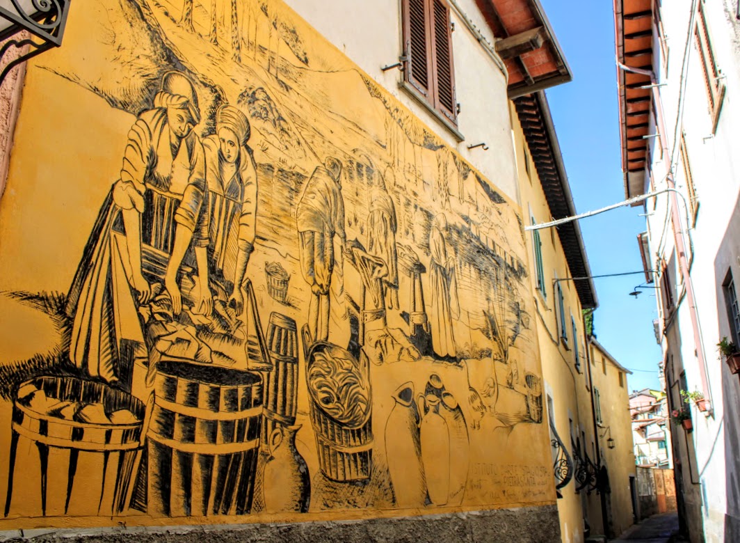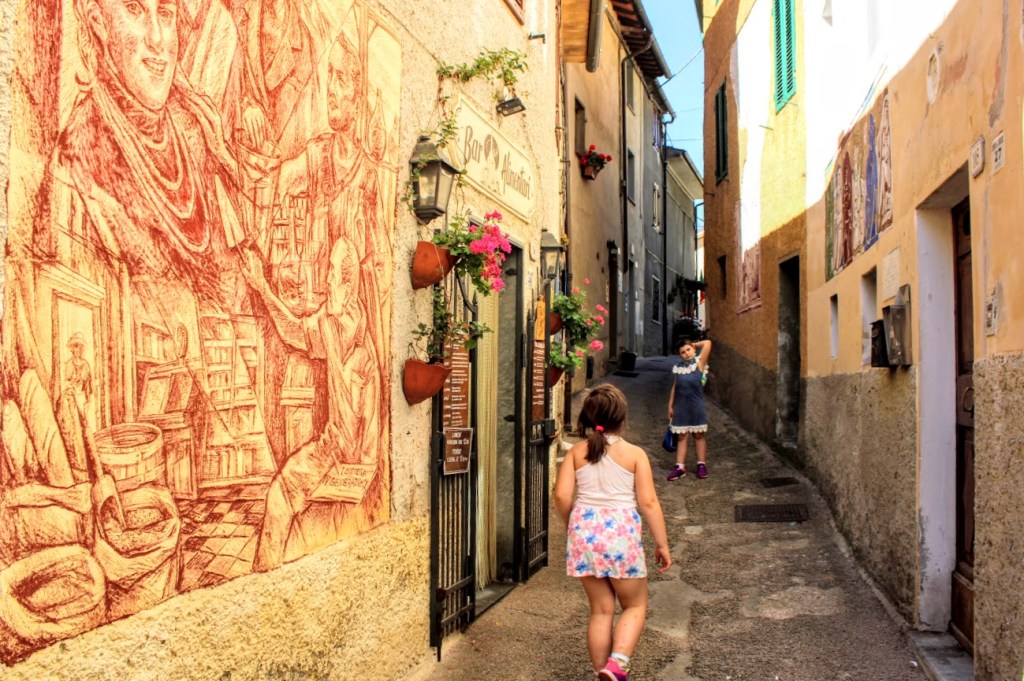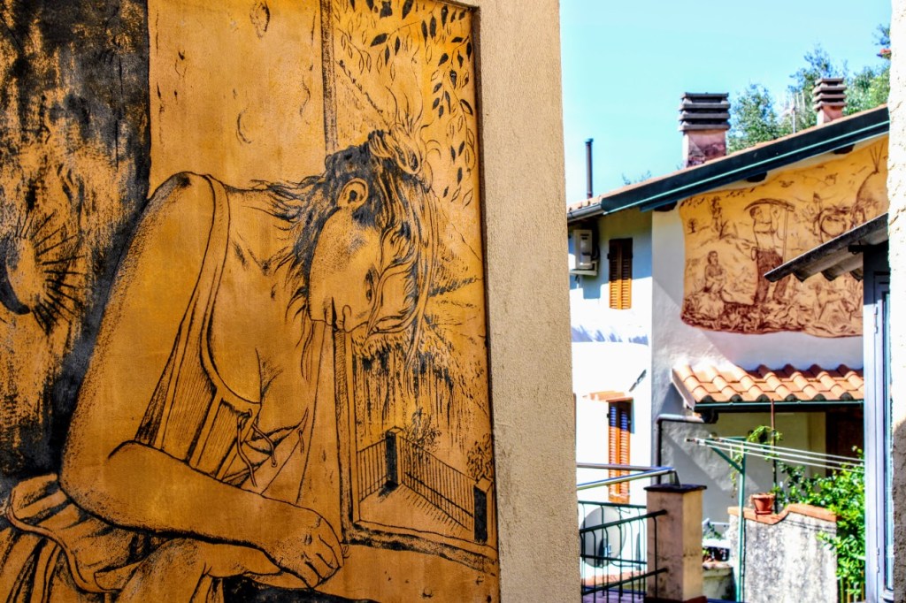 Immaginate di passeggiare in un tipico borgo toscano arroccato sulle pendici di un montagna mentre ammirate le pareti delle case decorate con mirabili graffiti.